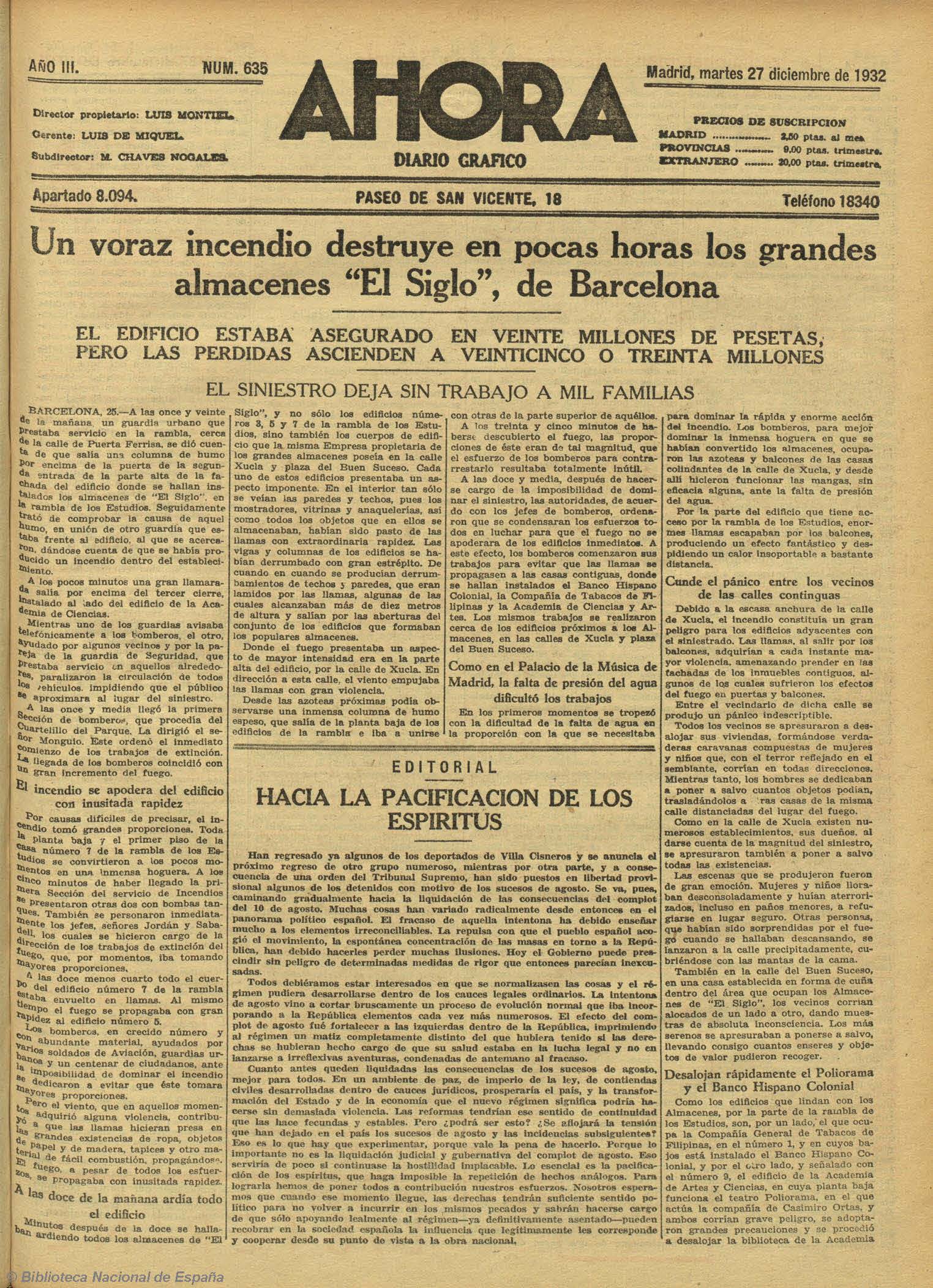 Incendio en los almacenes "El Siglo" (25 de diciembre de 1932)